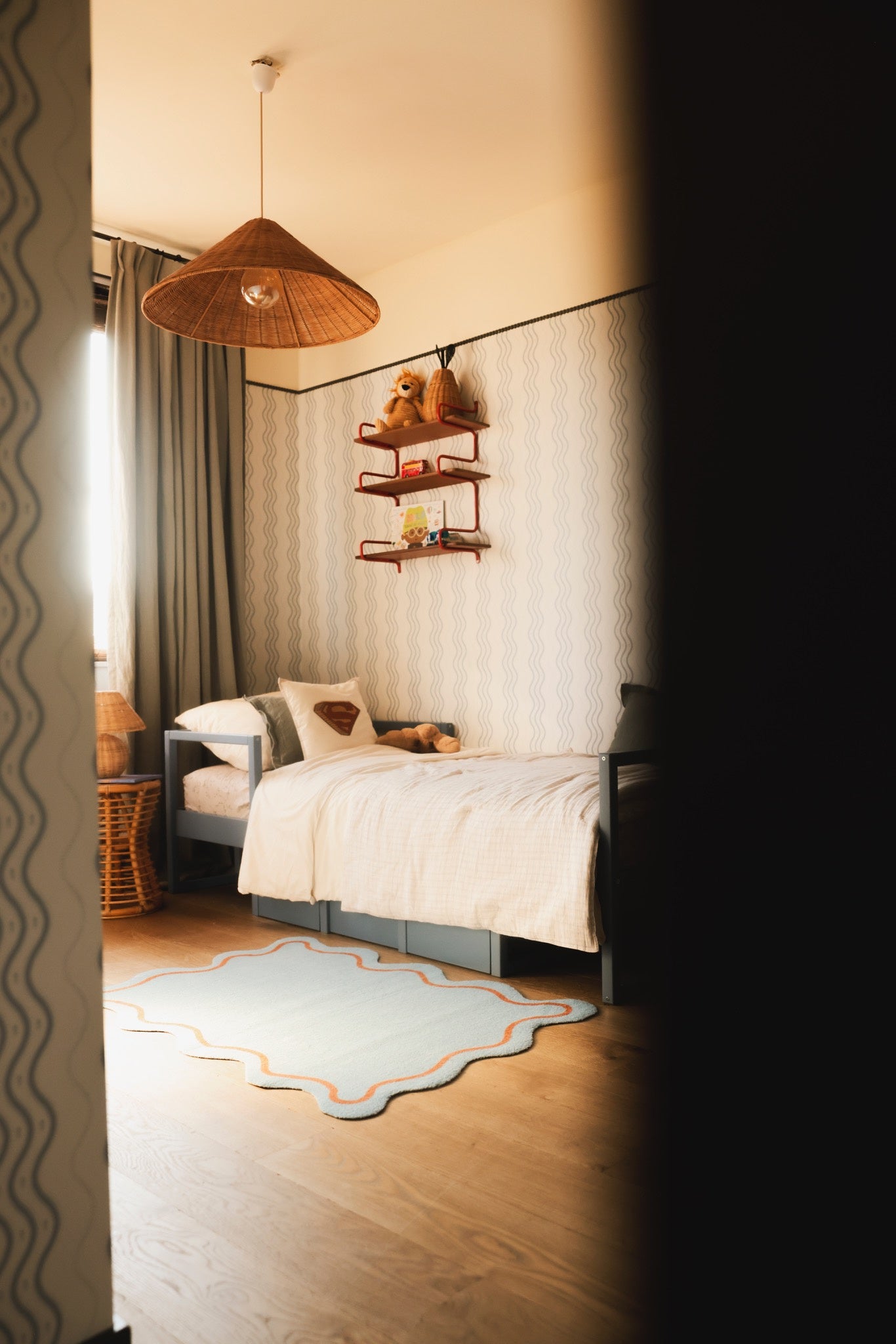 Toepassing: Een zachte, veilige basis voor spelen, kruipen en knuffelen – dit vloerkleed brengt comfort én stijl in de kinderkamer, met antislip voor zorgeloos bewegen, zelfs met je kleintje op de arm.